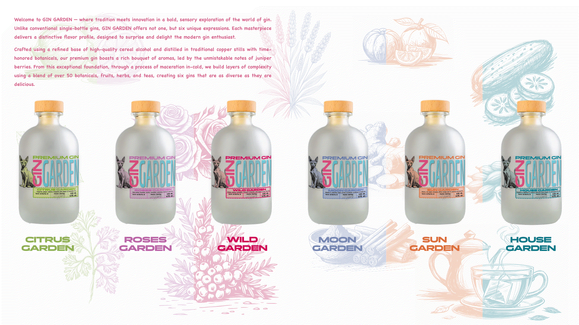 Gin Garden invites you to explore the captivating world of botanicals and fruits that give life to gin. From them arise its most alluring notes —citrus and fresh, sweet and fruity, herbal, spicy, woody, earthy— a natural symphony of aroma and flavor. The gin´s most characteristic notes are represented in our six different creations.